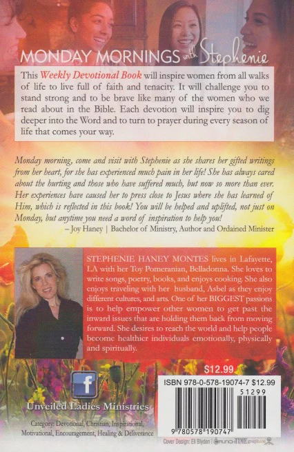"Monday morning, come and visit with Stephenie as she shares her gifted writings from her heart, for she has experienced much pain in her life! She has always cared about the hurting and those who have suffered much, but now so more than ever. Her experiences have caused her to press close to Jesus where she has learned of Him, which is reflected in this book! You will be helped and uplifted, not just on Monday, but anytime you need a word of inspiration to help you!" –Joy Haney